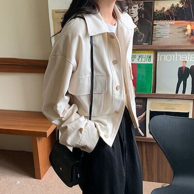アウター レトロ ジャケット レディース ゆったり 年春秋 ショートセクション ワークウェア 長袖 トップス 多用途 薄手 カジュアル 韓国