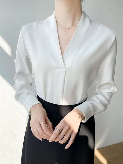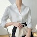 今っぽシアーシャツ ホワイト フレンチ 春と秋の新作 ファッション ロングスリーブ Vネック シャツ 多用途 トップス 韓国
