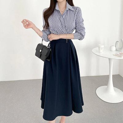 シャツワンピース 2024秋 新作 気質ラペルスプライシングフェイク2ピース長袖ドレス女性