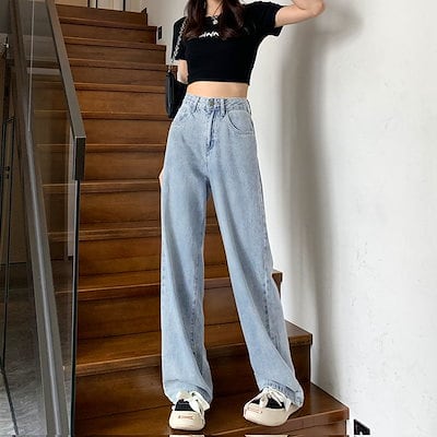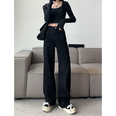 デニムワイドパンツ 秋新作 ワイドパンツ ジーパン 垂下感 簡単な カジュアル 韓国ファッション 百掛け やせて見える13