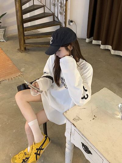 2024 秋冬トップス スウェット 長袖 Vネック 英語 数字 23 ゆったり 秋 白 おしゃれ かわいい 韓国ファッション レディース お出かけ