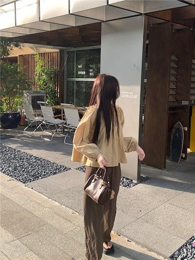 2024秋冬トップス シャツ 長袖 メロウネック ガーリー 甘め キュート 秋 白 茶色 おしゃれ かわいい きれいめ 大人っぽい 韓国ファッション レディース お出かけ