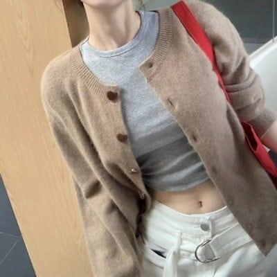 2024 夏秋トップス カーディガン ニット セーター ラウンドネック ボタン 長袖 ゆったり 細見え 秋 おしゃれ かわいい ガーリー キュート 甘め 韓国ファッション レディース お出かけ