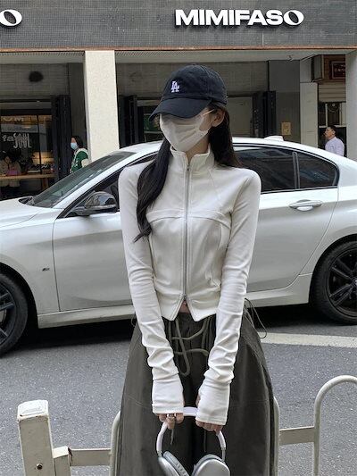 2024春夏 アウター ショート ブルゾン かわいいフル ブルゾン トップス ハイスタンド ショートストリートレディース長袖 カジュアル ファッションお出かけトラック