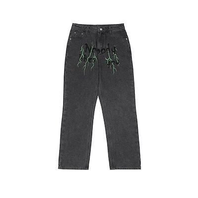 ストレートジーンズ韓国レディースアルファベット 刺繍 でモダンジーンズ2023人気新作春服レディース