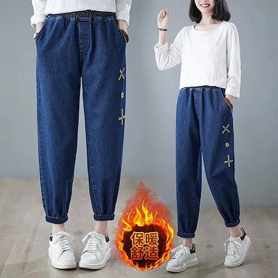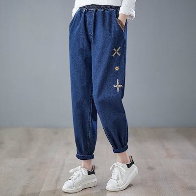 ジーンズレディース春服韓国ファッション可愛い刺繍ハイウエストワイドパンツ肉を隠す着痩せ効果ゆったり通気性