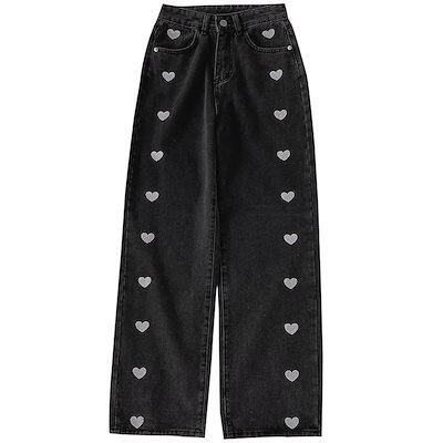 デニムパンツ 日系 ジーンズ ワイドパンツ レディース ハイウエスト 着痩せ ジョガーパンツ 刺繍 ズボン カジュアル スラックスパンツ20代 30代 ズボン 韓国 大きいサイズ 脚長効果!スキニー