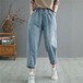 サルエルパンツ デニムパンツ 刺繍 花柄 レディース Gパン ゆったり カジュアル ガウチョ 30代 ウエストゴム ワイド おしゃれ 体型カバー