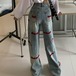 スラックスパンツ 今年も人気!欧米トレンドワイドパンツINSハイウエスト刺繍ジーンズ2023新入荷モッピングパンツ プラスサイズ 母の日