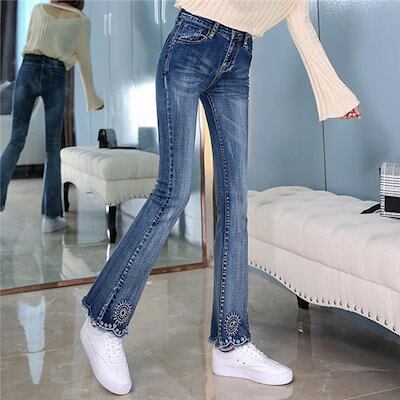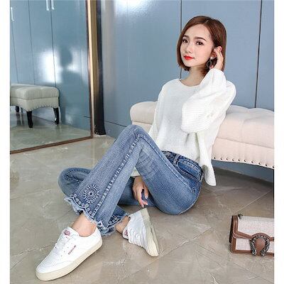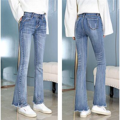 デニムパンツ レディース スキニー 刺繍 ボトムス ジーンズ 着痩せ ストレッチ アンクル丈 美脚 カジュアル スリム 大きめサイズあり 無地