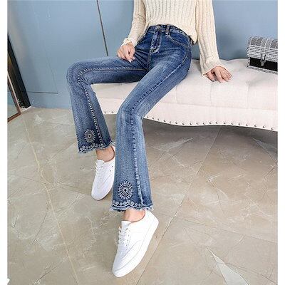 デニムパンツ レディース スキニー 刺繍 ボトムス ジーンズ 着痩せ ストレッチ アンクル丈 美脚 カジュアル スリム 大きめサイズあり 無地1