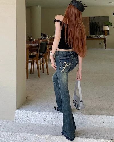 ジーンズ ロングパンツ デニムパンツ フレアパンツ gパン ローライズ 刺繍 ストレッチ レトロ ボトムス レディース カジュアル 長ズボン ファッション