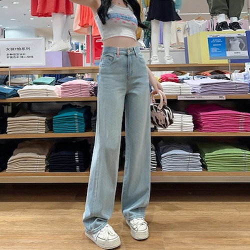 カラーブロッキングのモップドジーンズ女性の夏の秋のタッセル刺繍ポケットハイウエストデニムパンツルーズカジュアルストレートワイドパンツ子供
