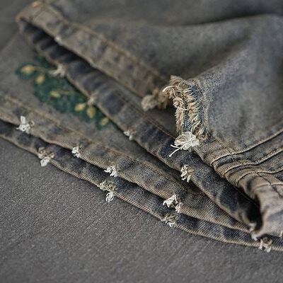 花柄刺繍 サルエルパンツ デニムパンツ ワイドパンツ バギーパンツ ガウチョパンツ レディース ウエ