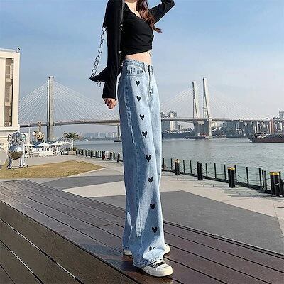 デニムボトムスショートパンツ初秋ジーンズワイドパンツモップパンツ着痩せ刺繍ハイウエスト