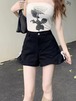 2024 春夏パンツ ショート丈 ワイド ハイウエスト 美脚効果 脚長効果 細見え 短パン 黒コーデ フレンチ おしゃれ かわいい 韓国ファッション系 レディース 女子お出かけ型