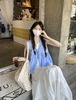 2024 春夏トップス シャツ ノースリーブ ゆったり 細見え 夏 青 ブルー 爽やか ガーリー キュート 甘め おしゃれ かわいい 韓国ファッション レディース お出かけ