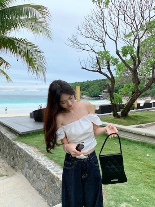 2024 春夏トップス シャツ 半袖 ノースリーブ オフショルダー 肩見せ 丈短め スリム へそ出し 細見え 夏 白 黒 おしゃれ かわいい 韓国ファッション レディース お出かけ