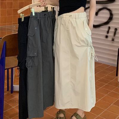 2024 春夏スカート ロング丈 ポケット スリット バックオープン ハイウエスト 美脚効果 脚長効果 細見え 夏 おしゃれ かわいい 韓国ファッション レディース お出かけ