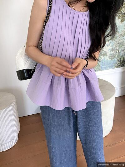 2024 春夏トップス シャツ ラウンドネック ノースリーブ ゆったり 細見え 夏 白 黒 紫 おしゃれ かわいい 韓国ファッション レディース お出かけ