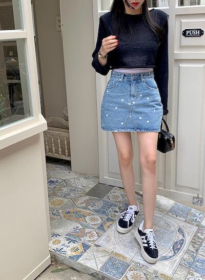 2024 春夏スカート ミニ丈 Aライン 台形 デニム ハート柄 ハイウエスト 美脚効果 脚長効果 細見え 夏 おしゃれ かわいい 韓国ファッション レディース お出かけ