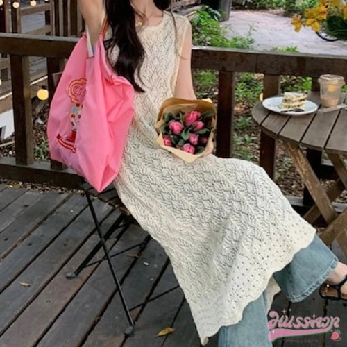 ワンピース ミモレ丈 ジャンパースカート ジャンスカ ノースリーブ Aライン レース 透かし彫り スリット バックオープン 白 ホワイト 春 韓国ファッション レディース おしゃれ かわいい カジュア