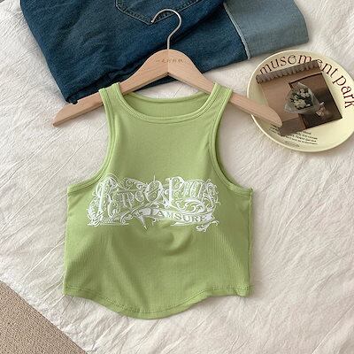 2024 夏 韓国 キャミソール トップス ブラウス トップお洒落 セクシー ショートスポーツ 韓国 tシャツ ファッション系ネック ヨガやダンススポーツにもup!