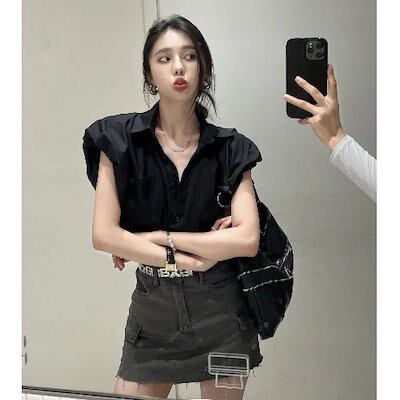 2024 夏 韓国トップス 半袖 Tシャツ 韓国 レイヤード風 着痩せスリムかわいいネックフレンチセクシーラウンドネックおしゃれスリーブカジュアルコーデショート丈ファッション系レディースお出かけ _
