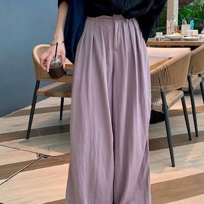 2024 春夏パンツ ロング丈 ワイド ストレート ハイウエスト 美脚効果 脚長効果 細見え 夏 白 黒 紫 おしゃれ かわいい 韓国ファッション レディース お出かけ