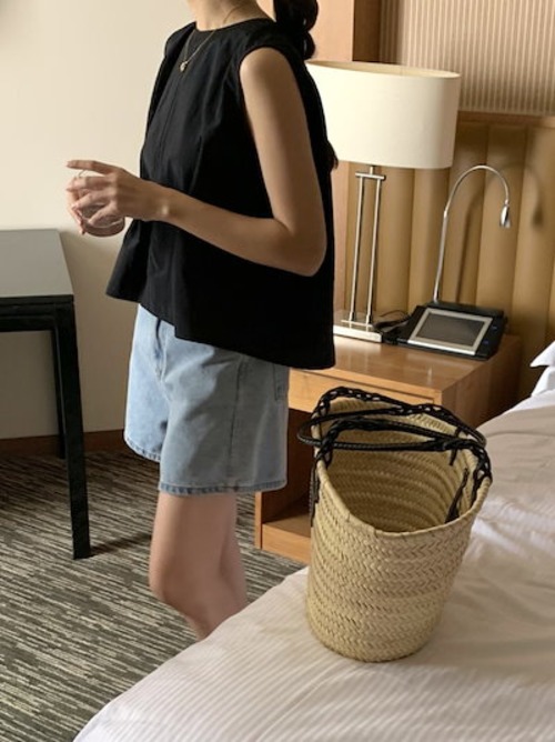 2024 春夏トップス シャツ ラウンドネック ノースリーブ バックオープン ゆったり 細見え 夏 青 黒 白 きれいめ おしゃれ かわいい キュート 韓国ファッション レディース お出かけ
