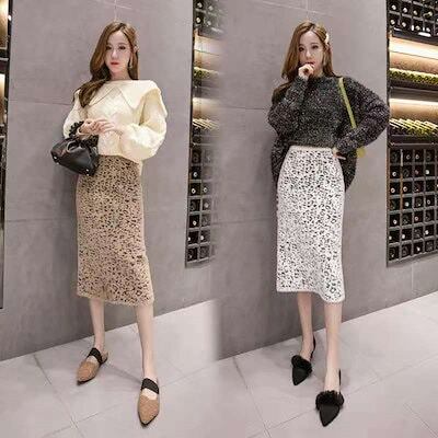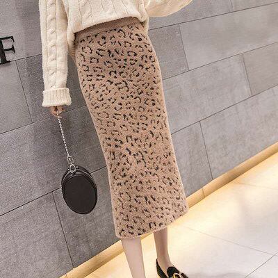 脚魅せミニスカート マーメイドスカート 夕イトスカ一ト豹柄 厚手 ニットスカート 韓国ファション レディース ハイウエスト ロングスカート ゆったり