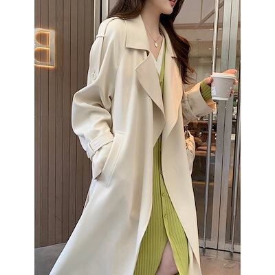 春 アウター コート 日系 ジャケット 垂れ感 トレンチコート 気質 セミロング スリミング トップス ロングコート 着痩せ アウター レディース