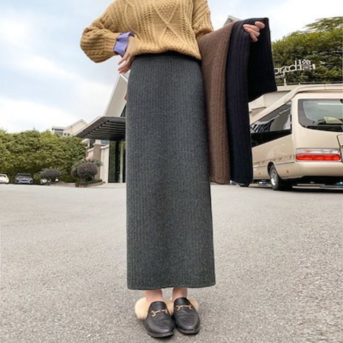 マキシスカート 脚魅せミニスカート マーメイドスカート 夕イトスカ一トスカート ニットスカート レディース 厚手 スリット入り 毛織スカート