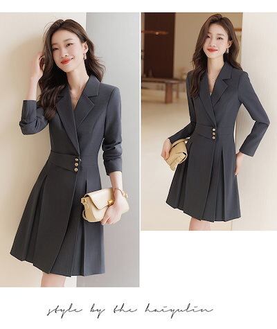ワンピース スーツワンピース 高品貭 プリーツ スリミング 韓国 ワンピース ドレス パーティードレス ロングワンピース 卒業式 ママ スーツ 入学式 ママ スーツ タイトワンピース