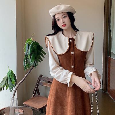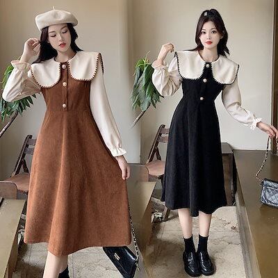 ロリータドレス 秋冬新作ネイビーカラーコーデュロイワンピース