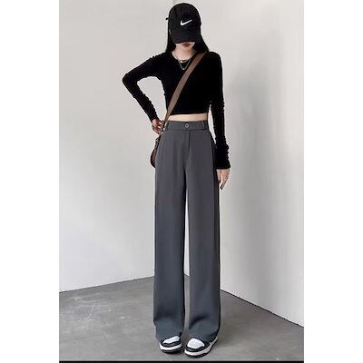 パンツスーツ OL スーツパンツ 女性 秋 2024 新作 薄手 カジュアル ストレート ワイドパンツ