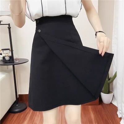 人气 新作 スカートスーツ 春夏 OL 大きい ブラック イレギュラー スカート スーツスカート 着痩せ