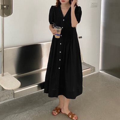 人气 新作話題!サテンスカート OL おしゃれ シャツワンピース 着痩せ 百掛け バブル袖 ワンピース