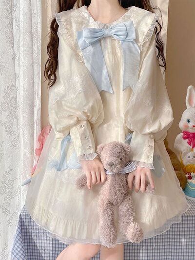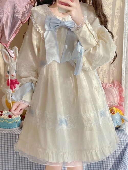ワンピース 甘ロリータロリータロリータリボンパッチワークワンピース学生春秋遮肉プリンセススカート レディース 韓国