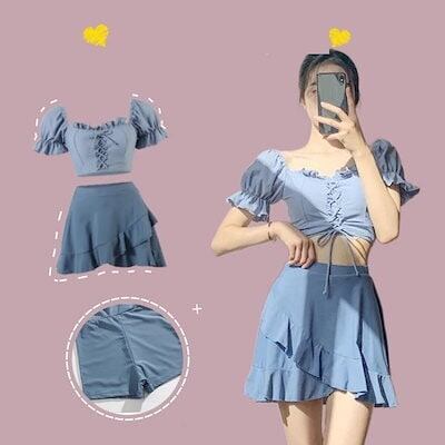 【3日以内出荷】半袖スカートタイプ女子分割カバーアップ肉薄い保守的な学生新しい女性モデル水着インスーパー妖精純粋な欲望 Swimwea 水着 レディース 大きいサイズ 高校生 フィットネス 競泳 ビキ
