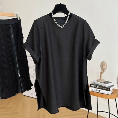 Tシャツ トップス オーバーサイズ150 KGスリットギャザー純色半袖夏ゆったり上着 レディース 韓国ファッション