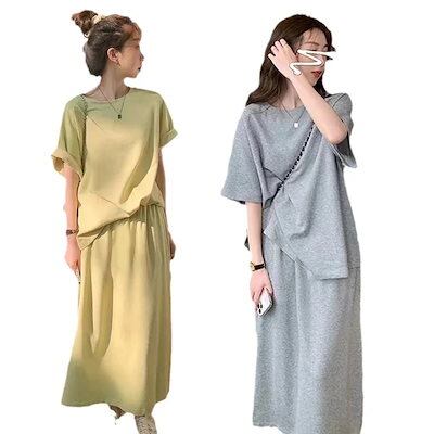 涼しく楽ちんセットアップ ジャージ スカート韓国ファッション 人气新作二点セット 夏服 レディース 無地 上下セット 着痩せ