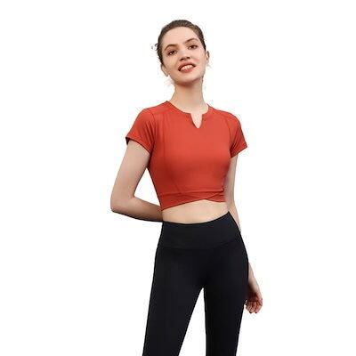 おしゃれヨガウェア お家ヨガウェア ヌーディで 着やせ Tシャツ タイト トップスス トレッチ ショート丈 セクシースポーツ 半袖 夏 薄手 レディース 韓国ファッション