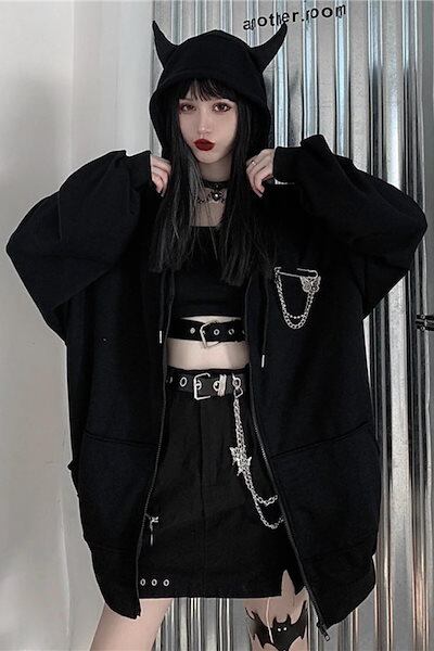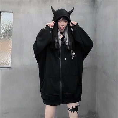 人気 流行 パーカー 秋新作 パーカー コート 秋冬 悪魔 裏起毛 病みかわ 地雷系 ゴスロリ ロック ロリータ