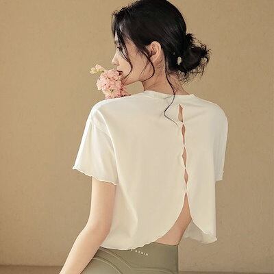 トレーナー お家ヨガウェア おしゃれカジュアルフィットネスヨガウェアスポーツトップス女性半袖Tシャツ