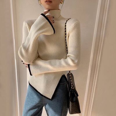 【本日限定】イレギュラーニットトップス タートルネックセーター ファッション 快適 アウター通勤