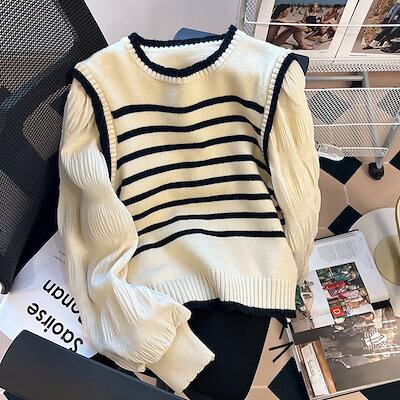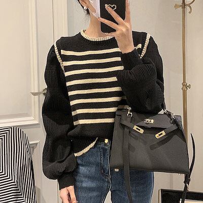 【Qoo10最安値挑戦!!!】ストライプニット 秋の新作 ニットトップス トップス ファッション 快適 アウター通勤