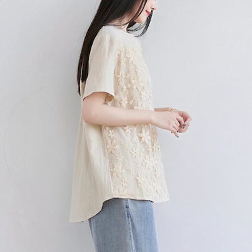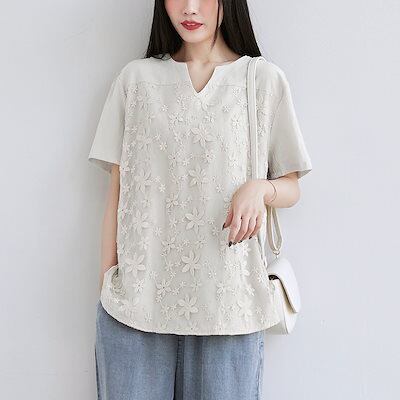 人気 夏 tシャツ おしゃれ ゆったり シンプル 半袖 レース Tシャツ トップス 着痩せ 百掛け チュニック のプレゼント ノースリーブ ロンt Tシャツカットソー オフィス スポーツ