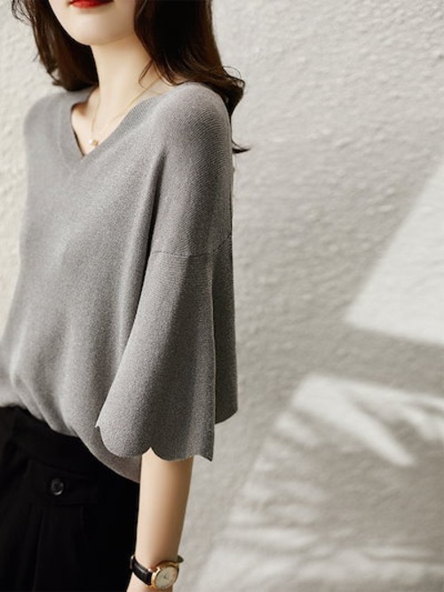 人気 夏 tシャツ アイスシルク ニット tシャツ 薄手 ゆったり Vネック 半袖ブラウス トップス レディース 20代 オシャレブラウス 半袖 ブラウス シャツ 白シャツ ロンt Tシャツカット