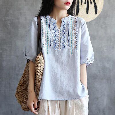 人気 夏 tシャツ 刺繍 レトロ 半袖 薄手 tシャツお肌に優しい 通気性のいい 20代 大人 通勤 アウター 韓国ファッション ロンt Tシャツカットソー オフィス スポーツ